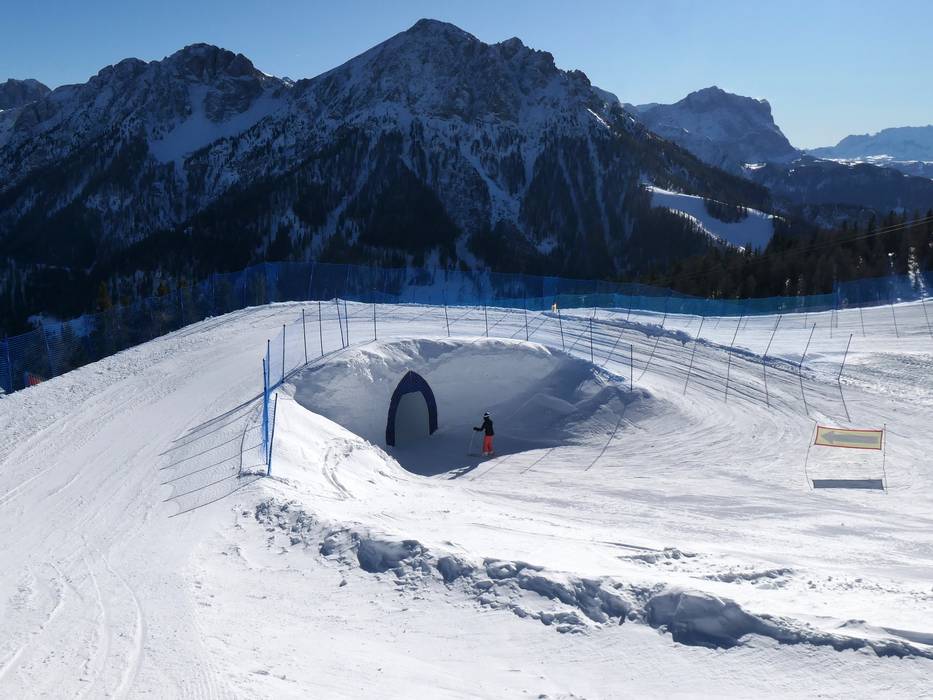 The Kids Safety Park Kronplatz is located at the Alpen Connecting gondola. In the park, children are playfully taught the correct behavior on the ski slopes. With fun obstacles, courses, banked turns, and tunnels, they improve their skiing technique. Fun for the whole family.