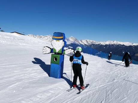 Various other highlights on the slopes provide fun and action: Family Line, Skimovie, Kronplatz Cross, Boardercross, Photo Point, Kids Safety Park, Self Timer Cianross, Speed Check, Miara Kids Area, and Playground Snow.
