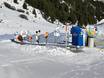 The children's area of the ski school is located at the 2-seater chairlift Startbahn. They offer a well-equipped children's area with a magic carpet, a playground with various animal figures, and a warm-up room.