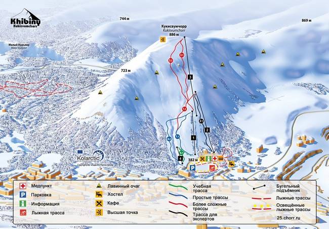 Kukisvumchorr (0.7 km), Kirovsk (Кировск) (7 km) Towns/villages at the ski resort