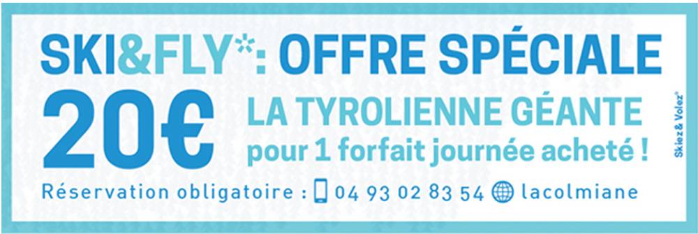 NEW IN LA COLMIANE - ZIPWIRETHE LONGEST OF FRANCEIn Winter as in Summer, the resort of La Colmiane proposes 1 giant Zipwire, with 2 lines, a total length of2 663 m, to fly over the Colmiane ski resort, in total security, in a top speed of 120km/h : Come to live an unique experience and strong sensations.Individual or Duet flight.