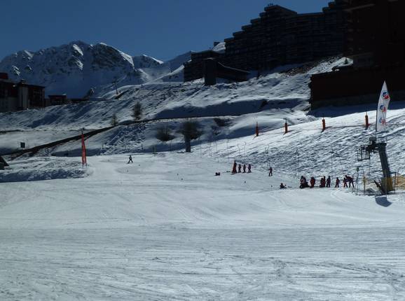 Beginner areas are set up throughout the entire ski resort. Here, even the lifts are usually free of charge. Beginner areas can be found in the villages of Aime la Plagne, Belle Plagne, Les Coches, Montchavin, Plagne 1800, Plagne Bellecôte, Plagne Centre, Plagne Montalbert, and Plagne Villages - Soleil. Overall, you can ski almost the entire resort on easy slopes. The only exception is the intermediate valley run to Champagny en Vanoise.