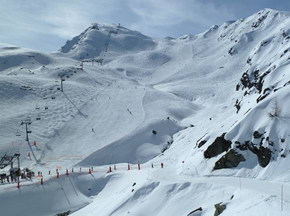 La Plagne offers a wide variety of slopes. Most of the runs are easy and intermediate. However, advanced skiers will also find numerous challenging descents and freeride areas. The slopes reach up to 3,250 meters in altitude. Up on the Bellecôte Glacier, you'll find excellent snow conditions and stunning views. In the lower areas, forest runs are particularly inviting. If you're looking for even more variety, you can take the cable car to Les Arcs for additional options.