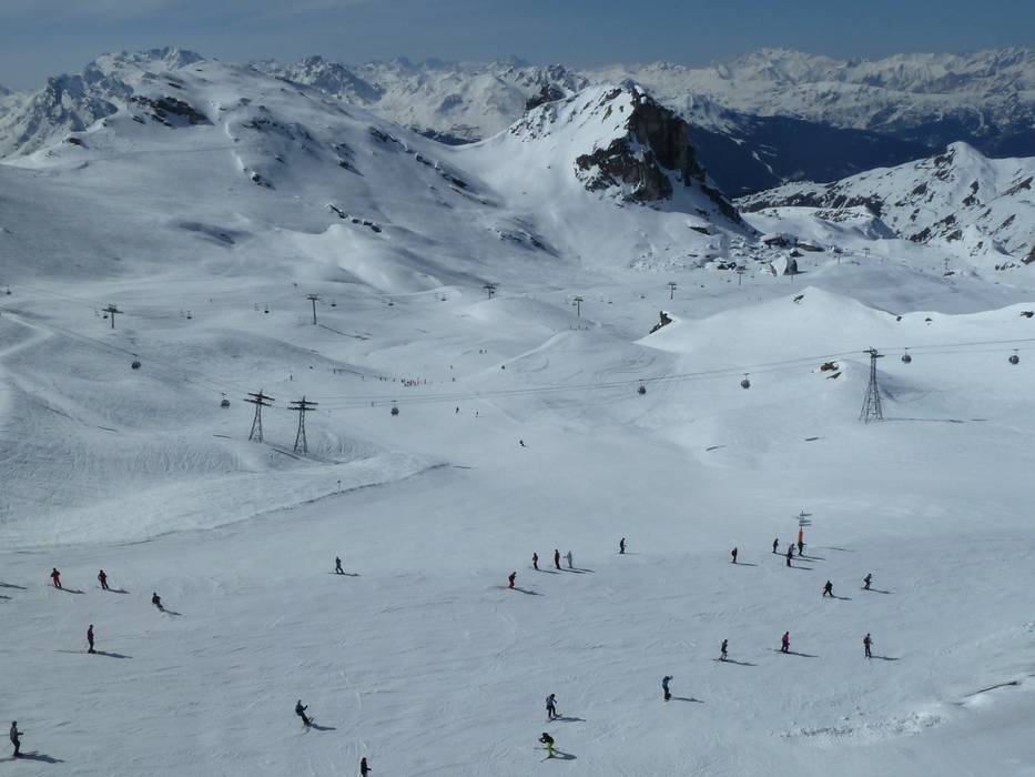 The La Plagne ski resort is connected to the Les Arcs ski resort by a large cable car. Together, the area is known as Paradiski.
