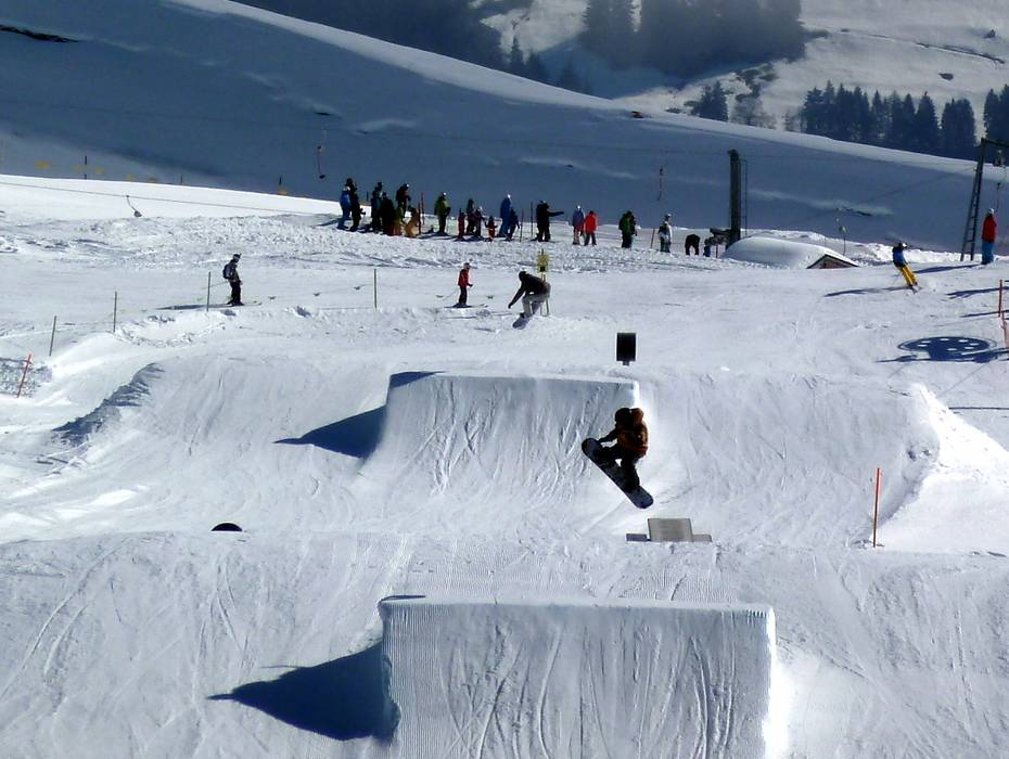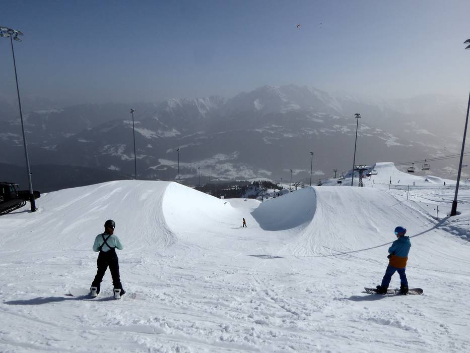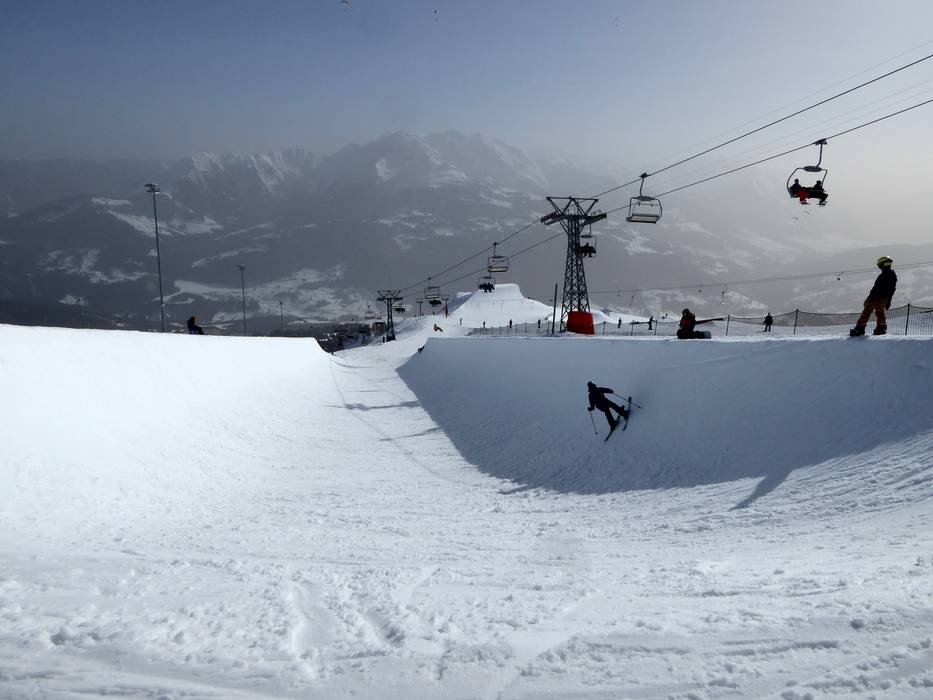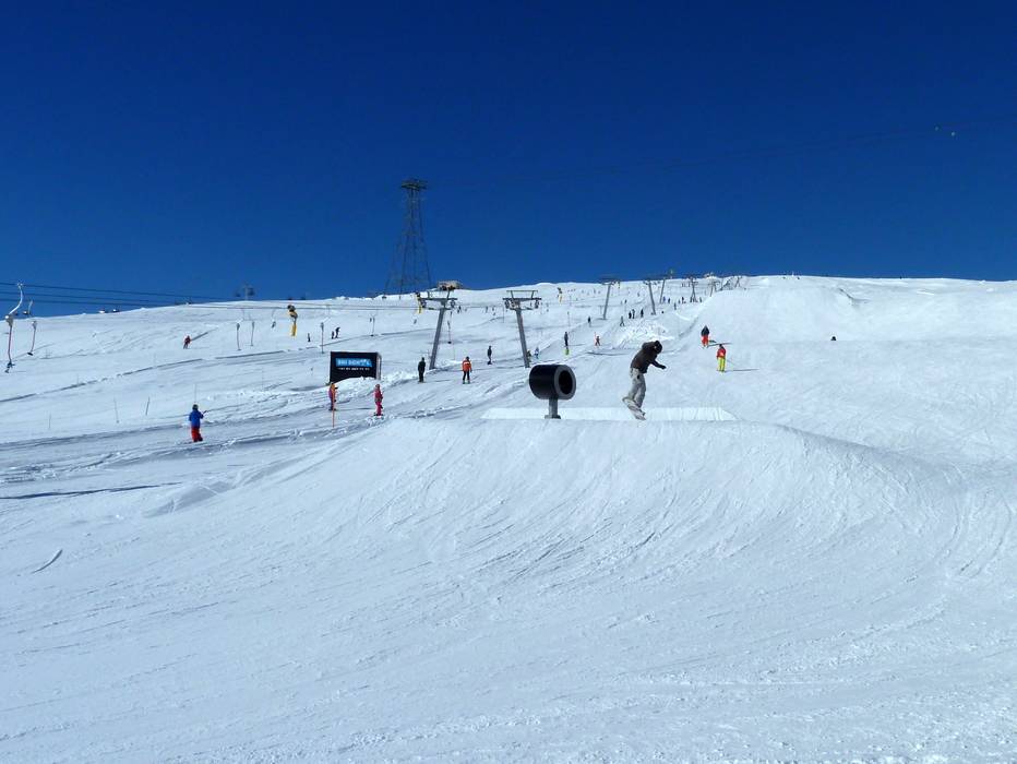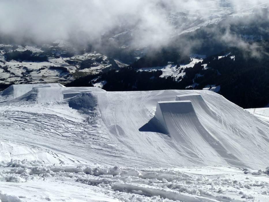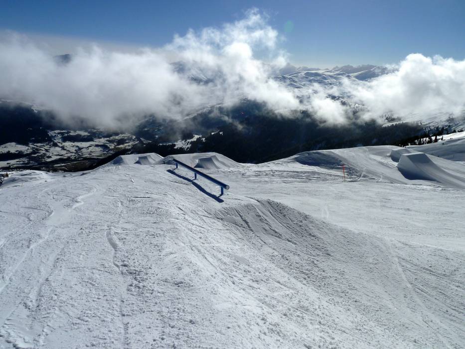 The easiest snowpark in Laax. There are various easy boxes and kickers.