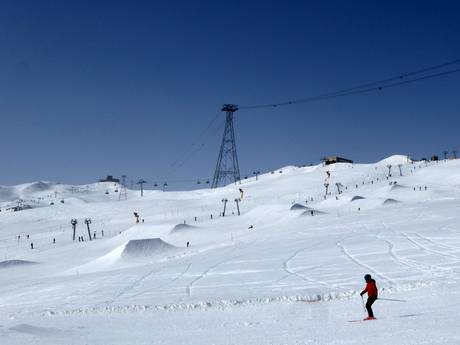 Advanced freestylers will get their money's worth in the snowpark. The snowpark is 550 m long and features kickers and obstacles.