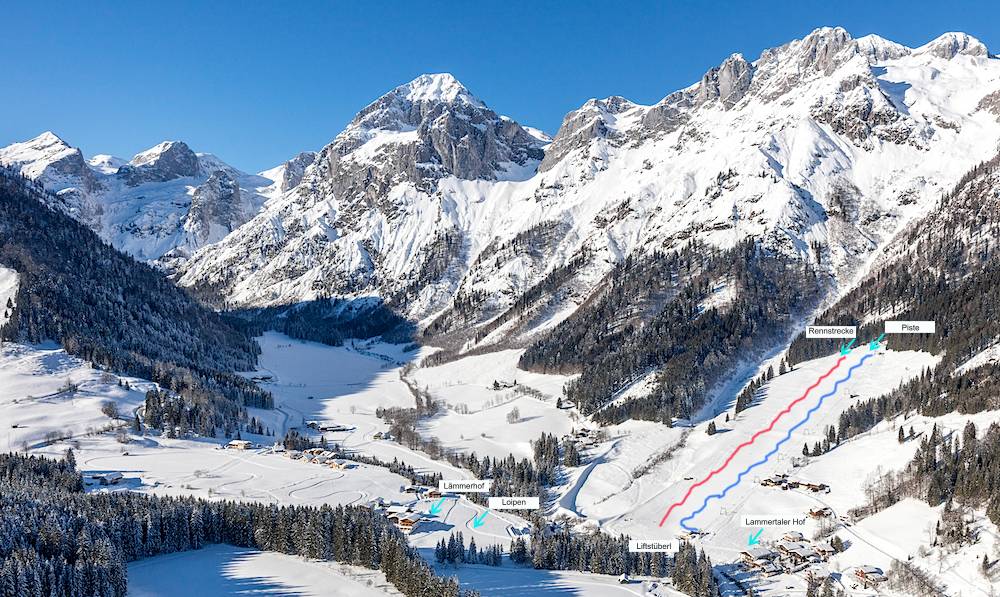 Lammertal (0.1 km), Lungötz (2.1 km), St. Martin am Tennengebirge (6 km) Towns/villages at the ski resort