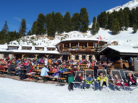 The ski lodge for connoisseurs offers a large sun terrace, a self-service area, and a serviced restaurant. Here you can enjoy delicious starters, exquisite meat, game and fish dishes, as well as fresh homemade cakes. The fish spaghetti is highly recommended.