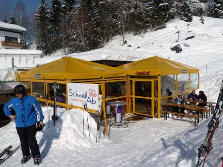 After a day on the slopes, the Schirmbar Schnall'Ab awaits you at the valley station in Innerlaterns. You can also end your ski day at the Falba Stuba in the ski area and at the Kuhstall Bar at the valley station.