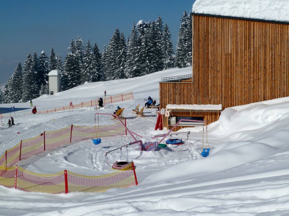 The Kinderland Laterns is located directly above the mountain station of the Gapfohl four-seater chairlift and below the Falba Stuba. There are two conveyor belts and plenty of space for the little ones. Right next door, more advanced children can use the platter lift.