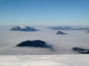 Sea of fog over Lake Geneva Take the double chairlift to the Tete des… Wide slopes and wide lifts in Flaine