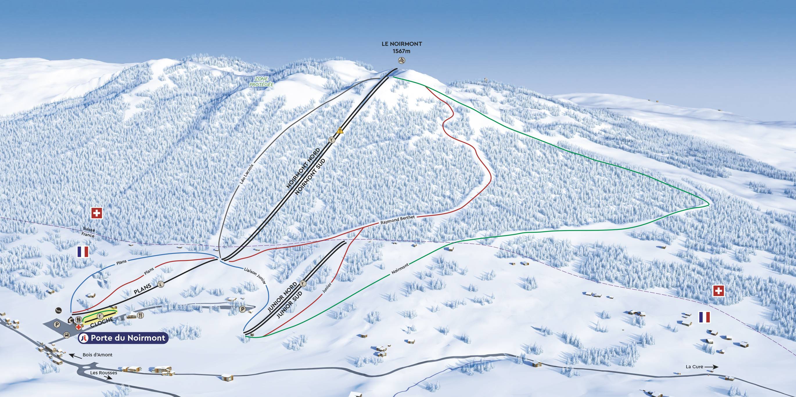 Trail map Le Noirmont (Jura sur Léman) Season ---- !!! closed temporarily/vorübergehend außer Betrieb