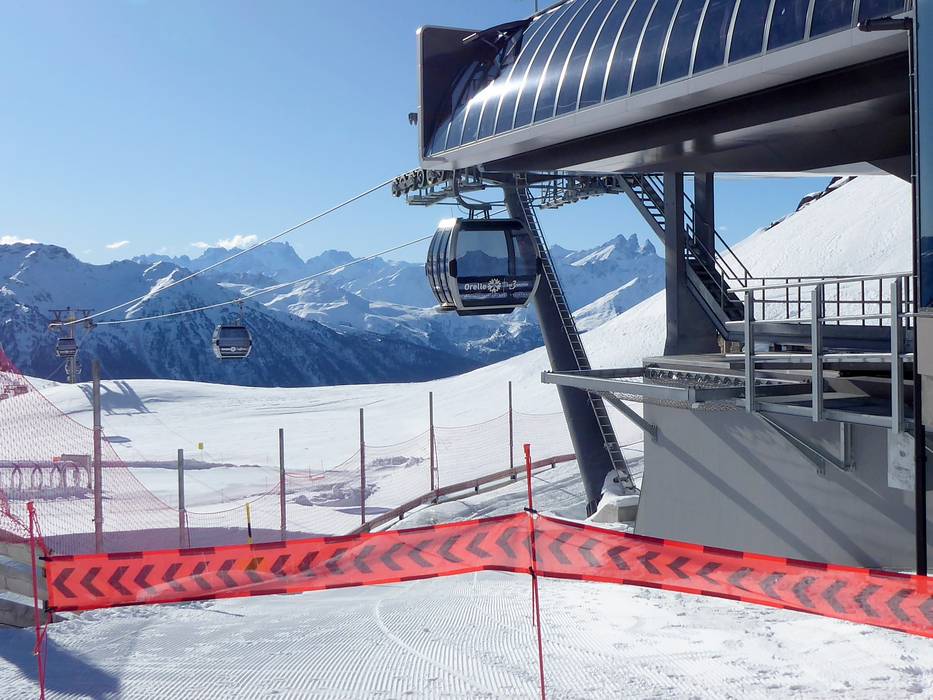 The 10-seater gondola lift Orelle connects the valley town of Orelle with the mid-station Plan Bouchet. It replaces the 12-seater gondola lift 3 Vallées Express. The 10-seater gondola offers significantly more comfort with seating for all passengers as well as a much higher transport capacity. At Plan Bouchet, there is a connection to the simultaneously constructed 10-seater gondola lift Orelle-Caron as well as to the 6-seater chairlifts Rosaël and Peyron.