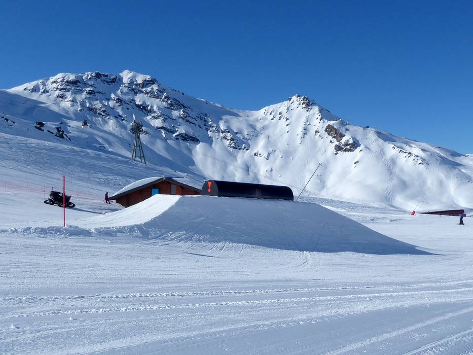 The VT Park, located at the Plateau button lifts, offers skiers and snowboarders a great experience in Val Thorens. The snowpark features tables, jumps, rails, and boxes in various sizes. In addition, the panorama is breathtaking.