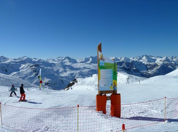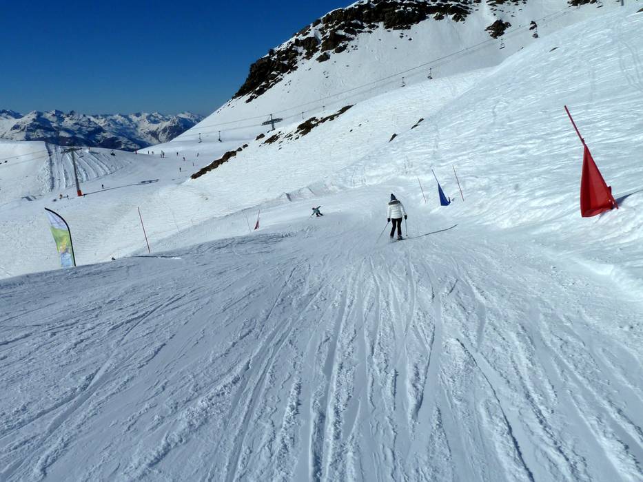 The connecting slopes "ours" to Méribel-Mottaret and the slope "bd cumin" to Les Menuires are quite flat and mostly have the character of a ski trail. - very many freeride/deep snow areas