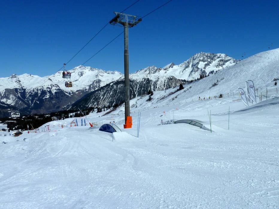 The snowpark is located on the Verdons piste in Courchevel 1850 and offers a range of moguls, big air, rails, tables, boardercross, and fun zones! Ideal for the whole family.