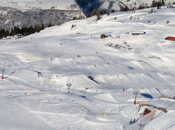 The FunPark is located above Arc 1600 between the Clocheret and Arpette chairlifts. It has its own drag lift.