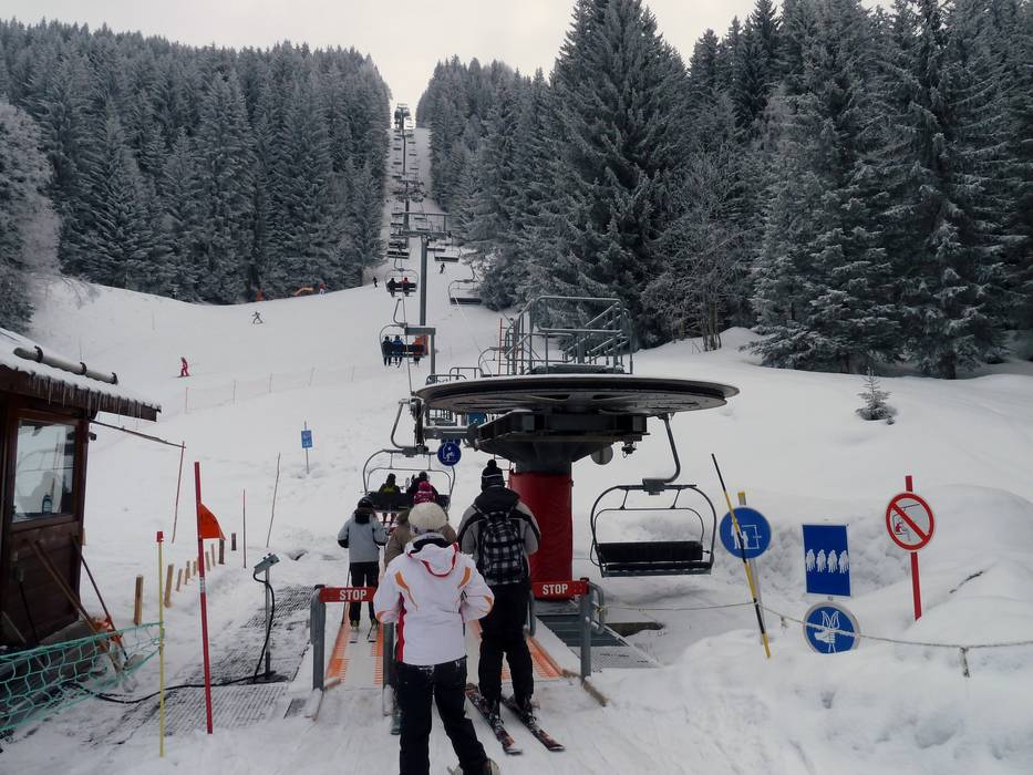 View from the Bellevue to the Prarion Wide slope to Col de Voza View of the slopes at Prarion TC Les Houches-Prarion - 8pers. Gondola lift… TS de Maison Neuve - 4pers. Chairlift… TS du Kandahar - 4pers. Chairlift… TS Ecole - 4pers. Chairlift (fixed-grip) TS Coupe du Monde - 4pers. Chairlift… TS du Crozat - 4pers. Chairlift (fixed-grip) TPH de Bellevue - 37pers. Aerial… Snow lance in Les Houches Very well-groomed slope in Les Houches Information board in the Les Houches ski area Slope signage in Les Houches Gastronomy tip Le Hors Piste View of the accommodations in Les Houches Right in the middle of the ski area is the Hôtel… Family slope with conveyor belt at Prarion Beginner area at the four-seater chairlift… View of the conveyor belt from the Ecole… View of the challenging Kandahar slope Warning: The steep platter lift ahead. High-altitude cross-country trail on the Plateau… Photo Les Houches/Saint-Gervais – Prarion/Bellevue (Chamonix)
