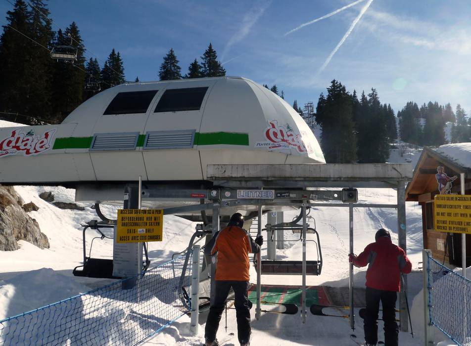 In general, most slopes are served by fast four- and six-seater chairlifts. From the valley towns, fast gondolas or chairlifts take you up into the ski area. Of course, there are still many platter lifts, as you might know from France. However, you usually don't have to use these anymore, as you can opt for the modern chairlifts. Except for one exception in Champéry, none of the lifts have weather protection hoods. Les Gets, Avoriaz, Châtel, and Champéry have invested in new and high-performance lifts in recent years. In Morgins, Champoussin, and Torgon, you will still often find older lifts.