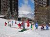 Le Corbier holds the ‘Famille Plus’ label and accordingly offers childcare (from six months old, in Saint Sorlin from three months), a variety of events and activities for children of all ages, as well as activities for the whole family, such as family championships. Toboggan runs are available not only in Le Corbier but also in Saint Sorlin, La Toussuire, and Les Bottières. Dog sledding safaris are possible in La Toussuire and Saint Sorlin. There are cinemas in Le Corbier and La Toussuire, bowling alleys in La Toussuire and Saint Sorlin. Le Corbier and La Toussuire also offer a public swimming pool and an ice rink. In St Jean d’Arves, farm visits are possible. A special highlight is the Laser Game (from age 4), which is played in the snowy forest of Saint Sorlin after the slopes close. Babysitters can be booked through the tourist information offices in almost all resorts. The fact that you can spend a completely car-free holiday in Le Corbier is especially interesting for parents with young children: in the mornings, you’ll see many children running in their socks from their apartment through the gallery to the bakery.