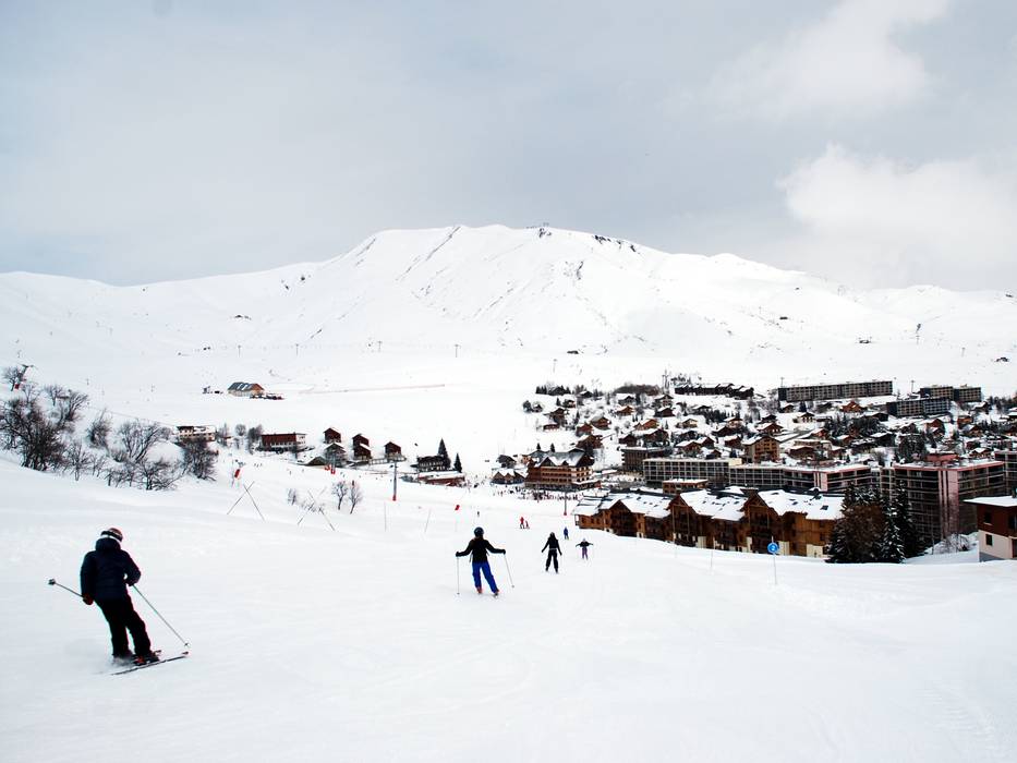 On the backside of the ski area, this blue slope leads away from all lifts for about three kilometers from the highest point to the Chalets d’Olle below the Col de la Croix de Fer. - Granges