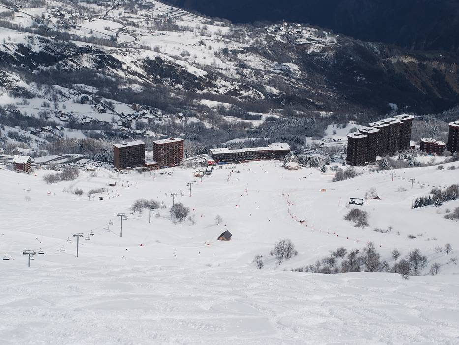 The longest descent from La Toussuire is of intermediate difficulty and leads down to the hamlet of La Bottière via the slopes Grand Truc, Lauze, and La Chavonnerie.