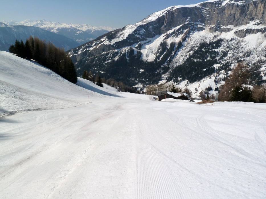 A valley run leads to Leukerbad via a narrow ski trail, with one route going to the Torrent cable car and another towards the village center. Valley runs also lead to Flaschen.