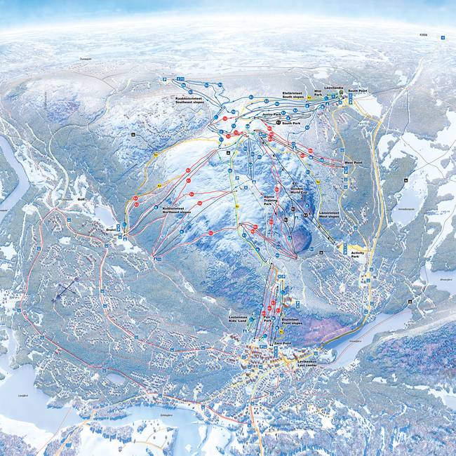 Sirkka (0.3 km), Rakka (2.4 km), Kätkä (1.3 km), Kouta (1.6 km), Immel Towns/villages at the ski resort
