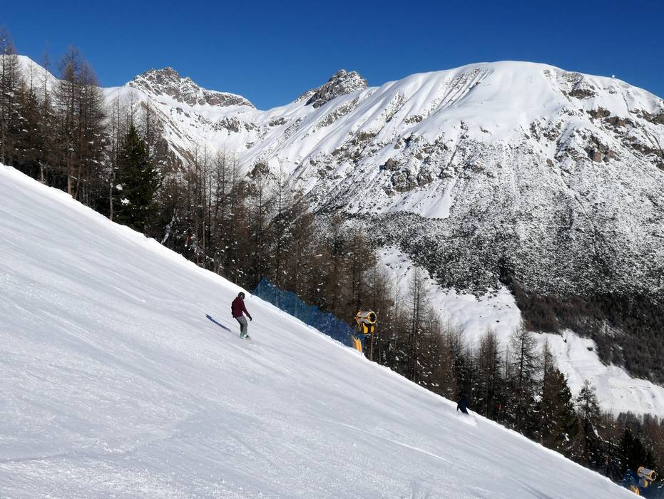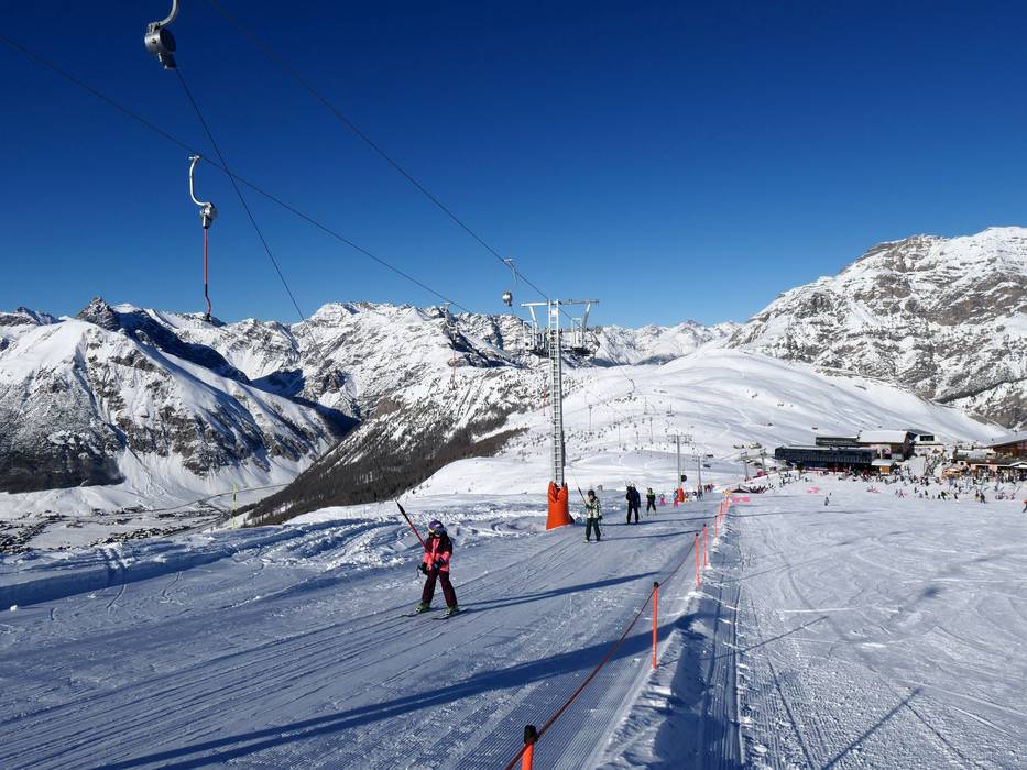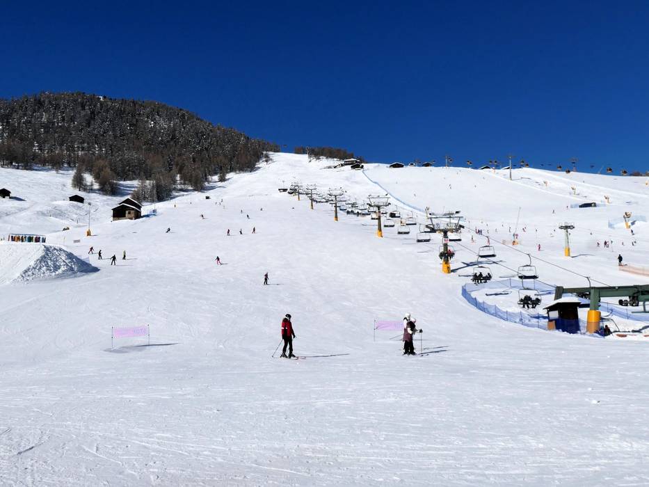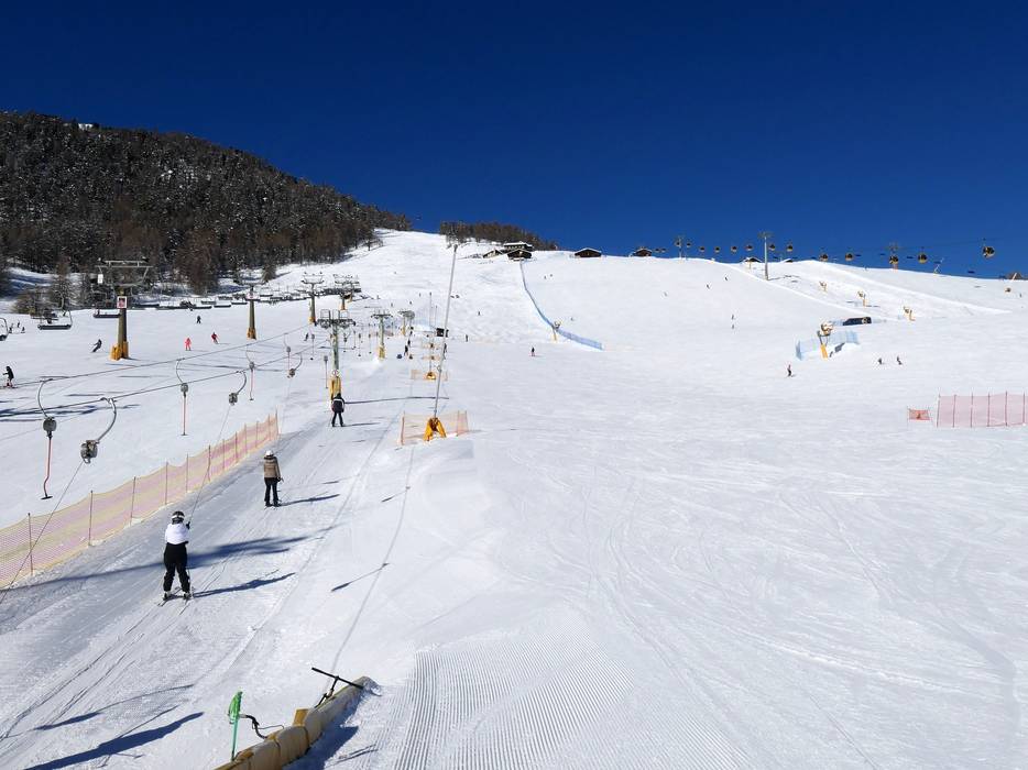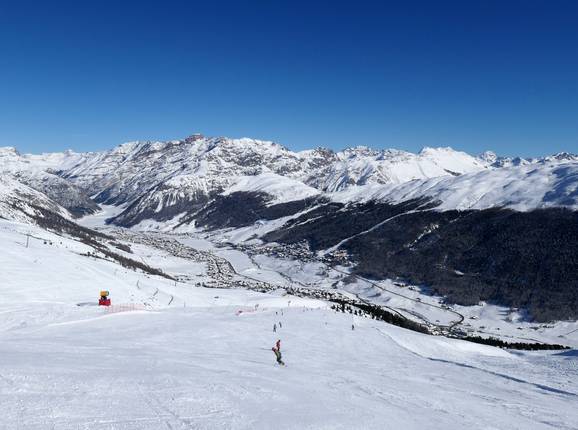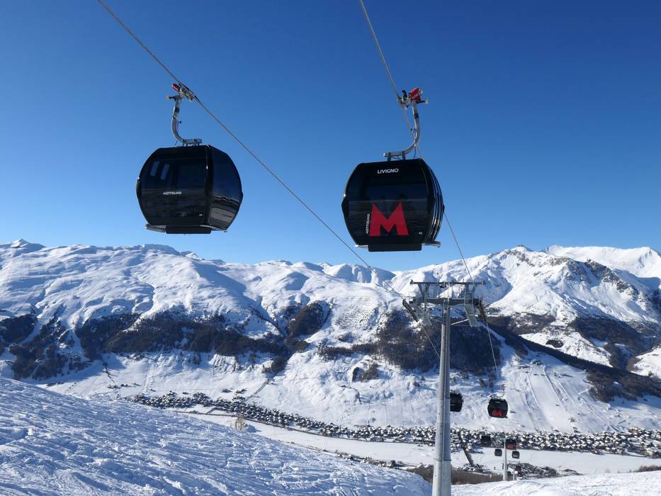 The ski area of Livigno rises, sun-kissed, on both sides of the town of the same name. Mainly gondolas and chairlifts provide access to the slopes on Mottolino and Carosello 3000/Sitas. Ski lifts and magic carpets are available right in town for beginners. Most of the runs for skiing and
