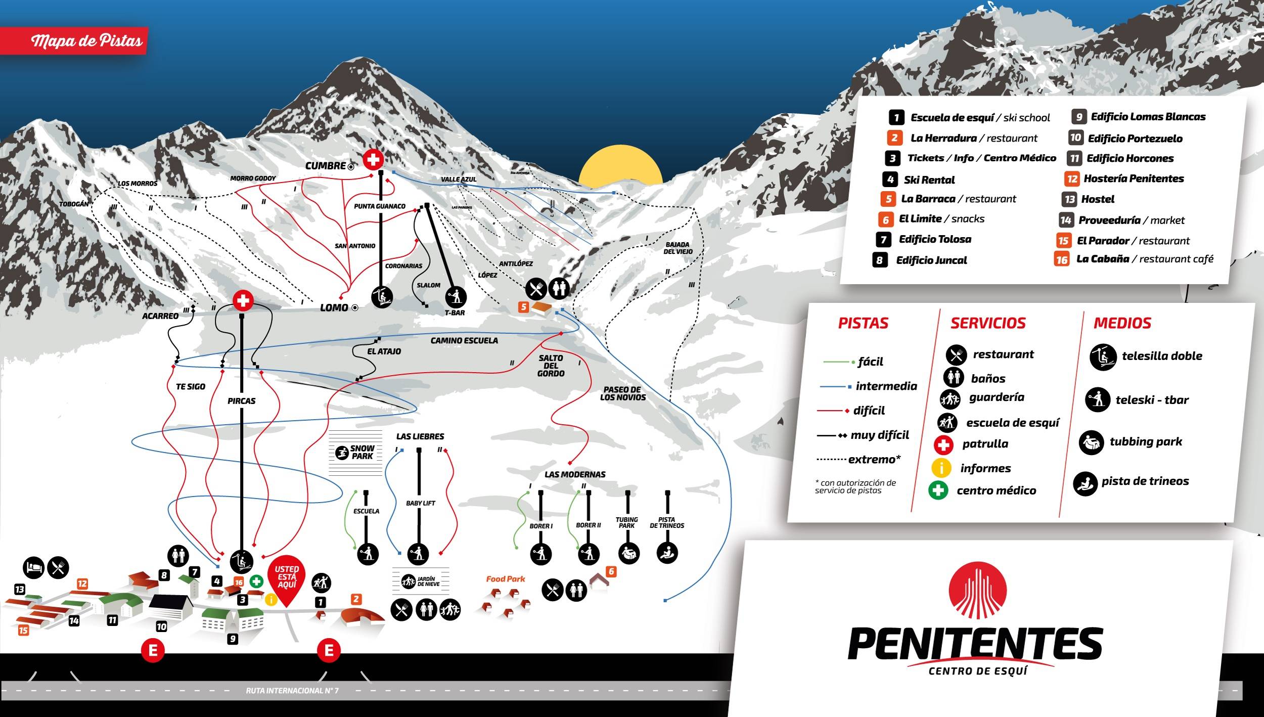 Trail map Los Penitentes Season ---- !!! closed temporarily/vorübergehend außer Betrieb