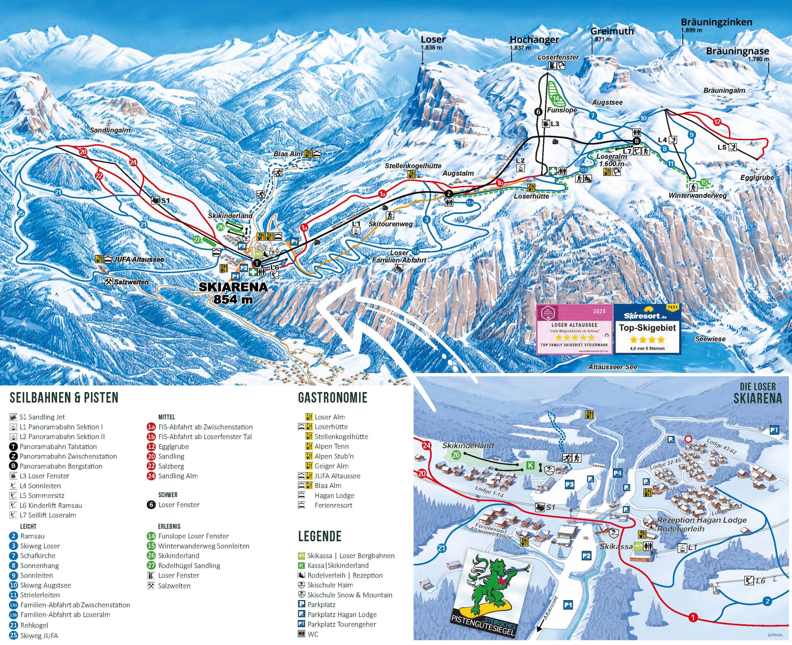 Lichtersberg (0.1 km), Altaussee (3.1 km), Bad Aussee (8 km) Towns/villages at the ski resort