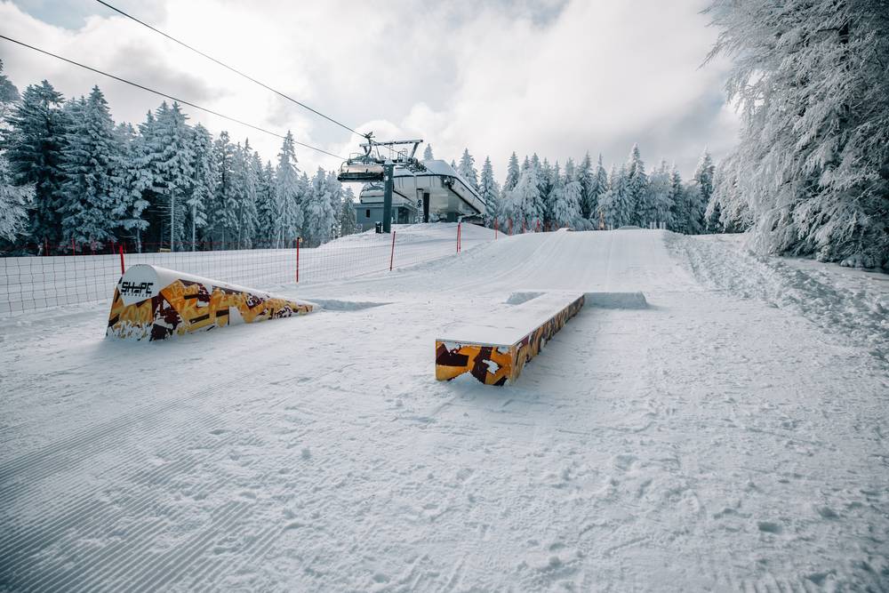 Inside, you’ll find four boxes, one rail, and three jumps waiting for young snowboarders!See you at Funpark Žigart in Areh!