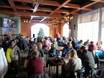 You can stop for refreshments at the valley station in the Caribou Chalet or at the mid-station in the Eagle Chalet and Paradise Chalet. The Caribou Chalet offers a self-service restaurant, a cafeteria, and the serviced Caribou Grill Restaurant. Unfortunately, there are no dining options at the summit or higher up in the ski area.