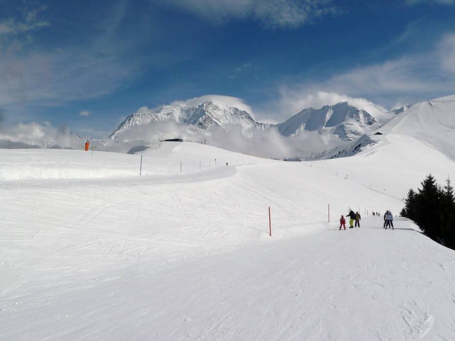 In the Megève ski area, you will find slopes of all levels of difficulty. The runs around Megève mostly lead through forest descents and across alpine meadows. From Rochebrune all the way to Cote 2000, the slopes all pass through forest clearings. From Mont d’Arbois down towards Megève and Saint Gervais, the slopes also wind through forest clearings. Further back at Mont Joux, you reach above the tree line, and on Mont Joly, the slopes run across open hillsides. Between Mont d’Arbois and Mont Joly, you always have a wonderful view of Mont Blanc. If you take the run from Mont Joly towards Saint Nicolas de Veroce, you get very close to Mont Blanc. The slopes between Combloux and La Giettaz are located entirely below the tree line.