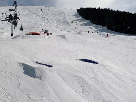 At the Grands Champs four-seater chairlift, you'll find the famous Snowpark of Megève. In addition to a boardercross, there is also a bag jump.