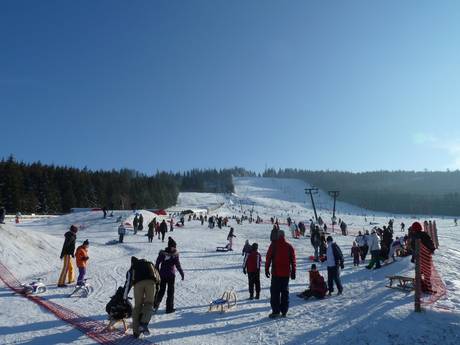 At Mehliskopf, the local ski school offers children's ski courses on weekends and during holidays. The first steps in the snow can be taken on a small practice slope with its own short rope lift. At the larger lifts, the staff kindly looks after the children.