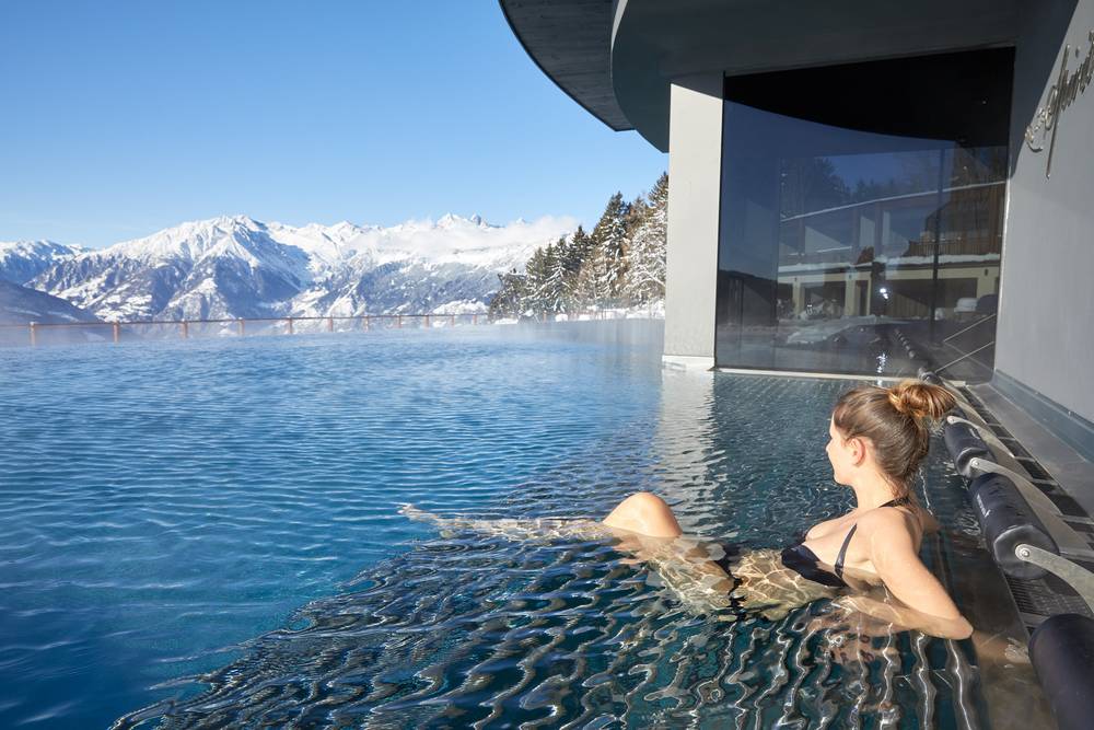 When an active winter day comes to an end, the real enjoyment begins. In the 6,000 sqm Premium Spa with two outdoor pools—one of them 25 meters long in the adults-only area—panorama sauna with show infusions, and infrared sweat room for warming up and relaxing.