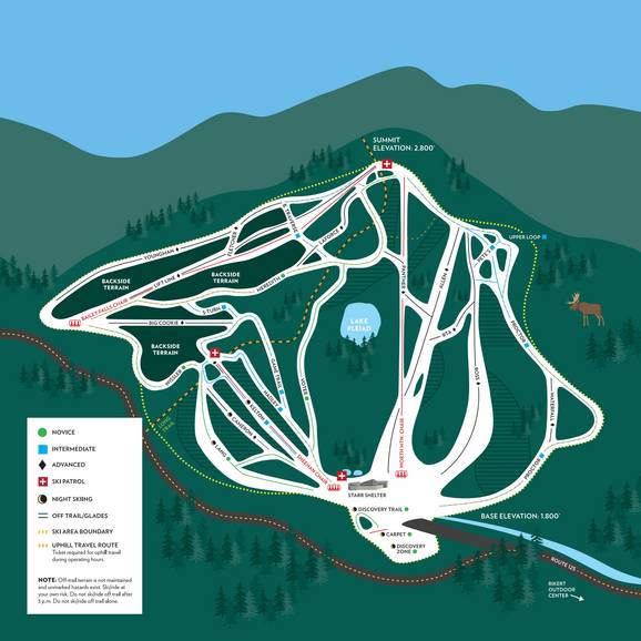 Trail map Middlebury College Snow Bowl Season 2024/2025