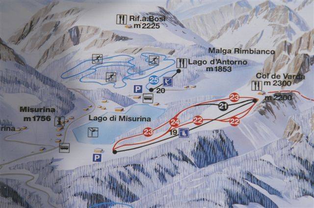 Trail map Misurina – Passo Tre Croci Season 2025/2026