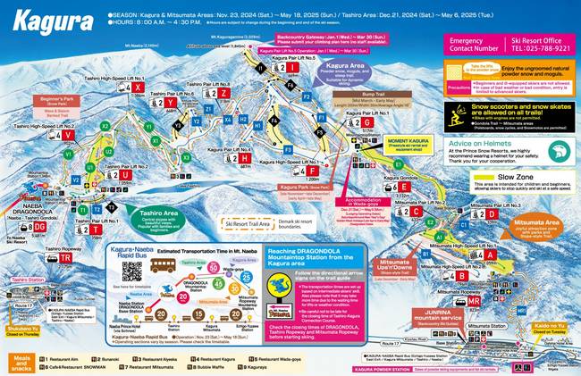 All lifts/cable cars at the ski resort Mitsumata/​Kagura/​Tashiro (Mt. Naeba)