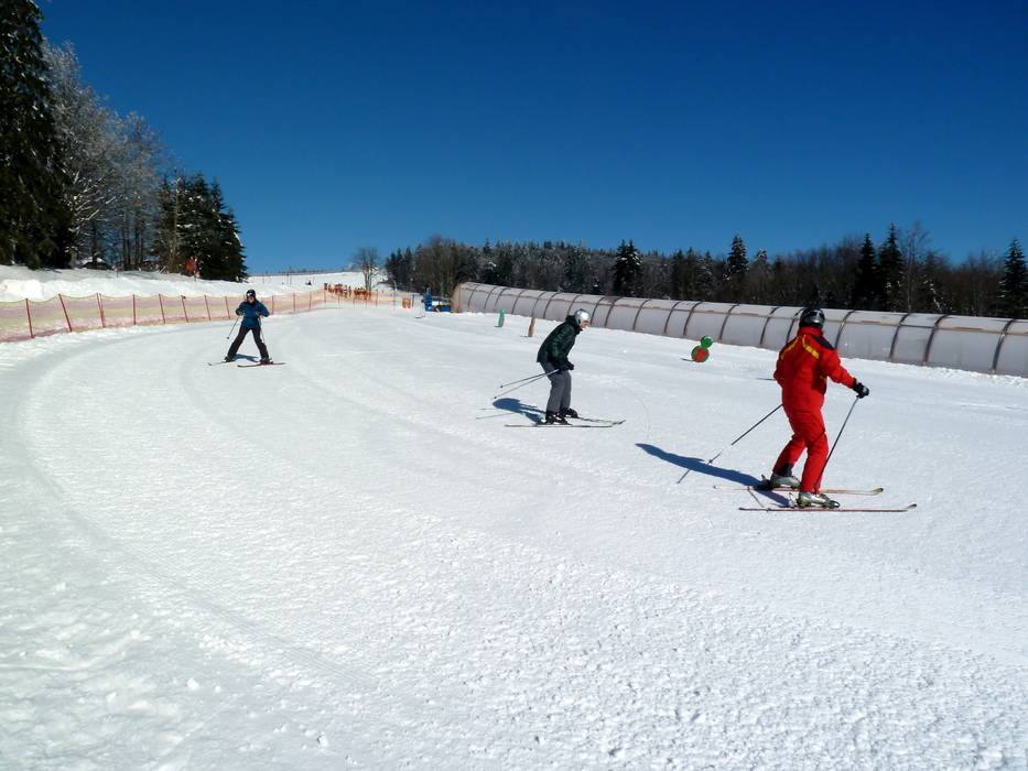 The terrain of the Junior Ski Circus is ideal for taking your first steps on skis or snowboards. All conveyor belts in the Junior Ski Circus are covered. The area at the 186 m long covered conveyor lift at the Alpe is also perfect for beginners. Afterwards, the easy slopes at the Almwiesen or Kirchen lift are waiting for you. Additionally, there is a baby lift (rope lift) next to the Kirchen lift. The red slopes are manageable for advanced beginners.