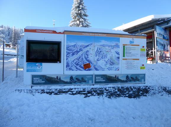 Numerous info points and information boards throughout the ski area make it easy to find your way around. The information board at the central ticket office also provides detailed operational information.