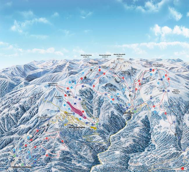 Prato Nevoso (0.1 km), Artesina (0.1 km), Frabosa Soprana (0.4 km), Towns/villages at the ski resort