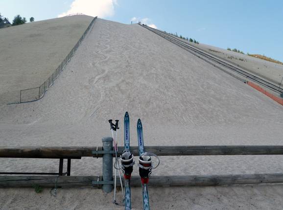 At Monte Kaolino, sand skiing and sandboarding are possible in Bavaria. Monte Kaolino near Hirschau in the Upper Palatinate is a 120-meter-high hill made up of 33 million tons of the finest quartz sand. The slope is about 200 meters long and, with a gradient of 40 degrees, quite steep. Even though