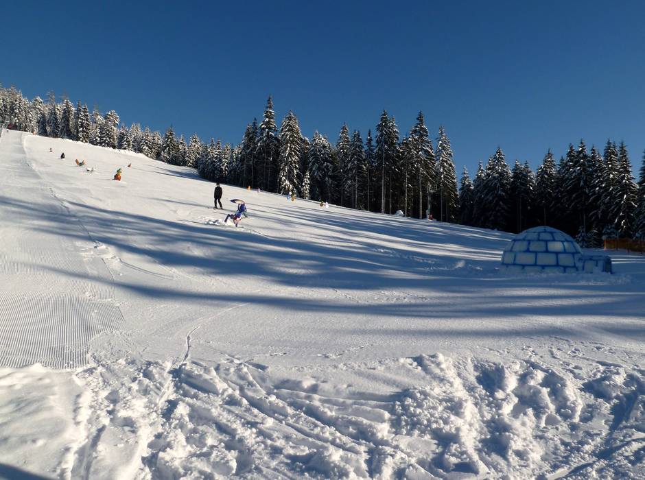 Along the platter lift at the mid-station, little ski dwarfs can look forward to numerous adventures with animal figures and a small house where they can quickly warm up again.