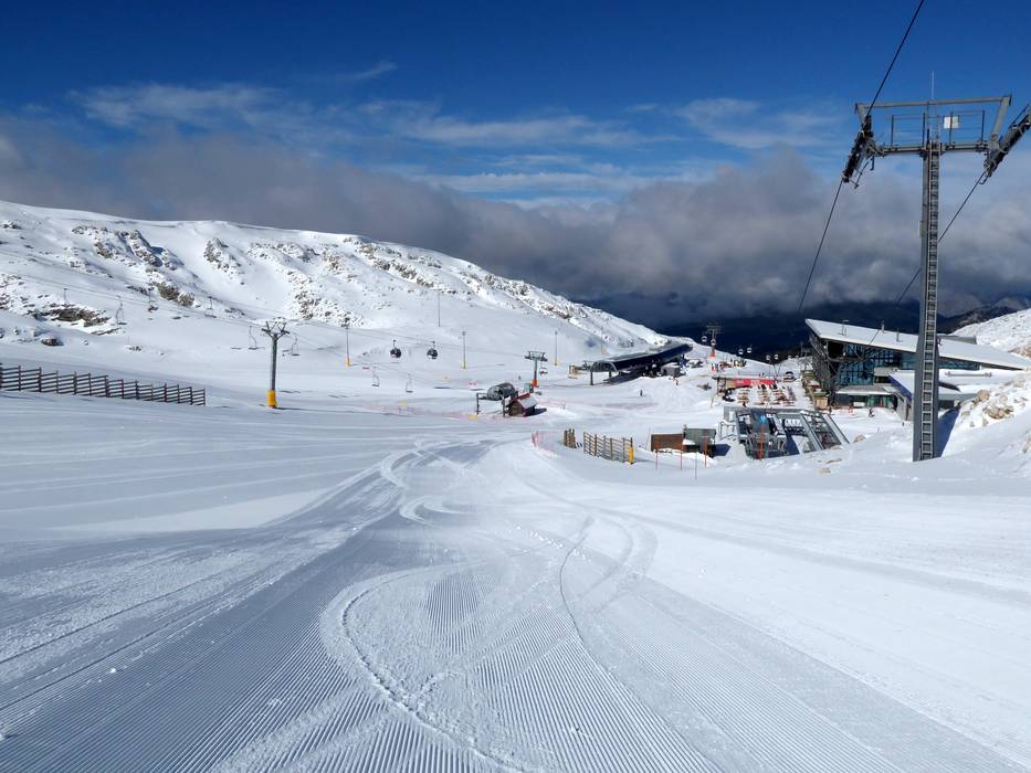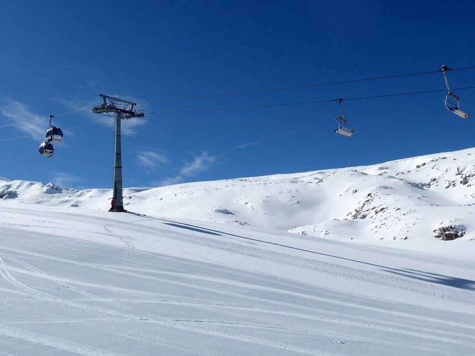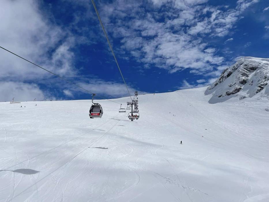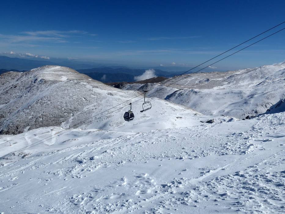 Wide slope with Bacchus combi lift Heniokos combination lift with panorama View as far as the Kyllini Massif, the birthplace… Prophet Elias Church at the Kellaria mountain… Combination lift (8-seater gondolas and 6-seater…
