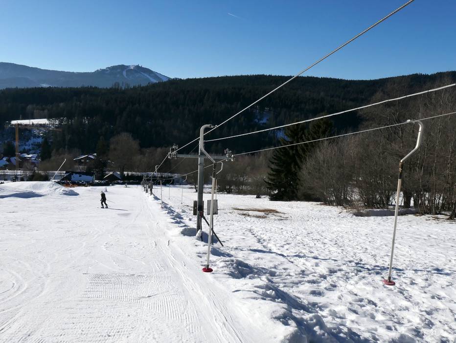 T-bar lift/platter/button lift at the ski resort Nad Nádražím/​Belveder – Železná Ruda