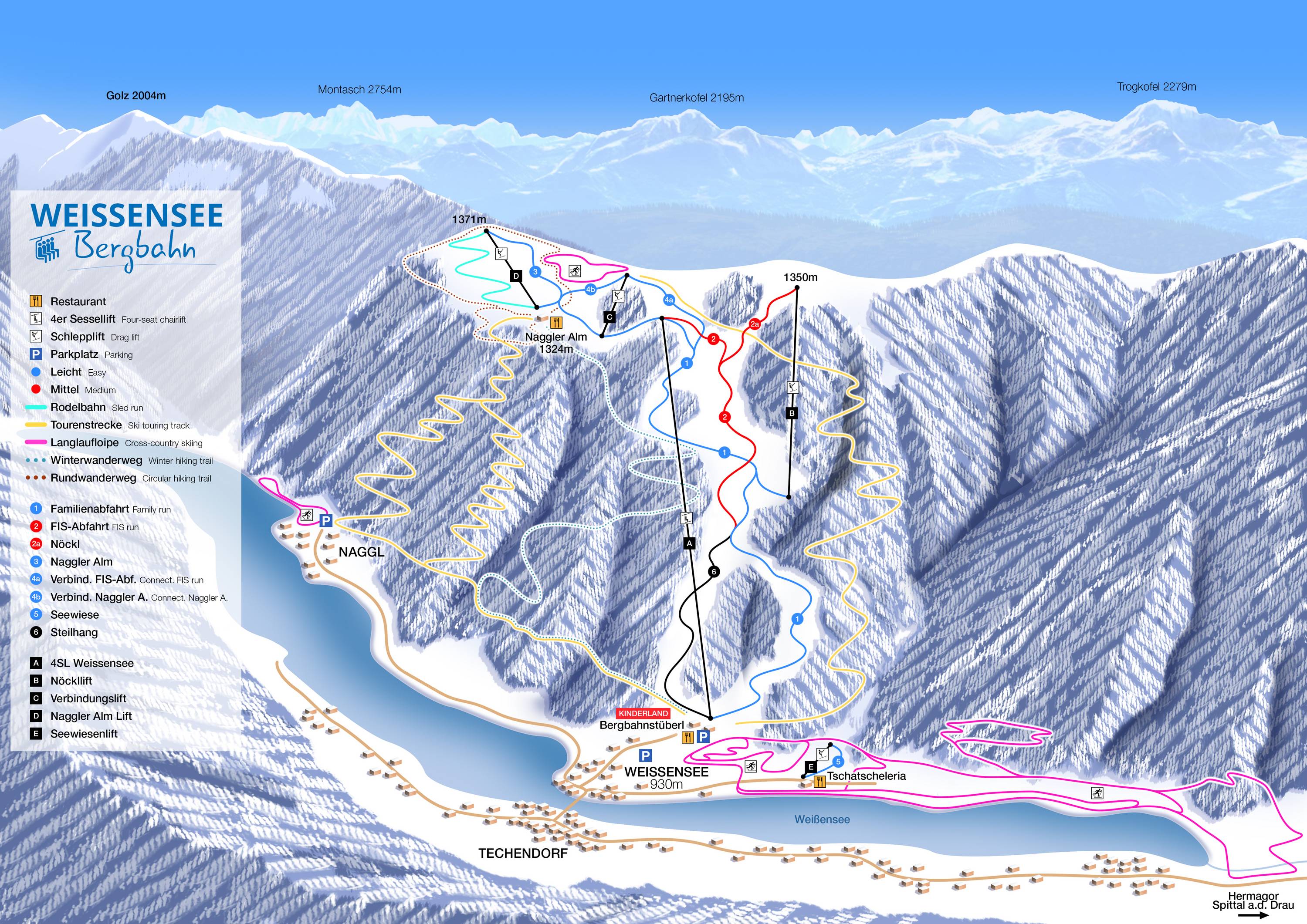 Techendorf (1 km), Weissensee (1.5 km), Naggl (3.3 km) Towns/villages at the ski resort