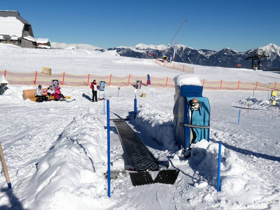 The children's area of the ski school DieSkischule.at is located at the Passo Pramollo pass near Sonnenalpe Nassfeld. Learning is easy with the conveyor belt and fun figures.