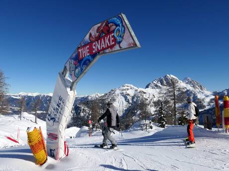 On the adventure slope "The Snake," you can look forward to waves, jumps, steep turns, boxes, and a spiral with a snow tunnel.